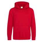 AWDis Just Hoods Youth Hooded Pullover. Twin needle stitching, double fabric hood. Kangaroo pouch pocket with hidden opening for earphone feed. Headphone loops inside collar. Unisex styling. Easy tear label.