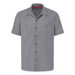 Dickies Adult 4.25 Ounce Short Sleeve Industrial Poplin Work Shirt. (WAS STYLE LS535) Mitered pockets with pencil division on left pocket. Dickies logo on side of left pocket and bottom of button placket. 4.25 ounce permanent press poplin, 65% polyester/35% cotton. Fade resistant. Dyed to match buttons. Industrial laundry friendly. Lined two-piece collar with permanent stays and snap closure. Style Ships From Fort Worth, TX.